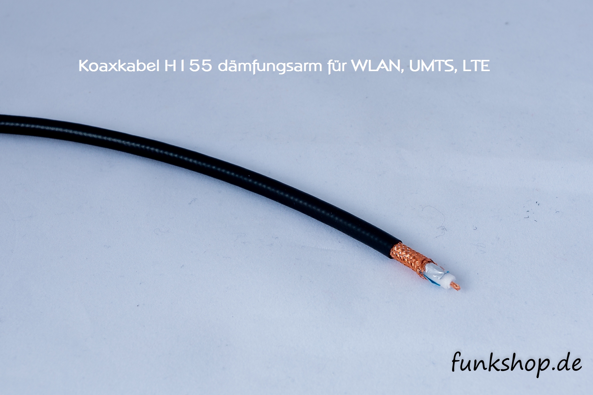 Grundlage ist Koax-Kabel H155 dämfungsarm für WLAN, UMTS, LTE . Optional können Sie via FME-Adapter plus FME-auf-ihren-Stecker oder direkt ihren Stecker auswählen. Für jede Seite einzeln wählbar (links oder rechts)